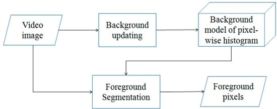 Gallego et al. [20] proposed a foreground segmentation system with a tracking algorithm in camera capture videos. In this system, pixel-wise difference detection between current image and background model was implemented in the initialization phase. The background modeling method modified the mean-shift algorithm with a feedback background model, which enhances the foreground detection accuracy. Zamalieva et al. [21] introduced a background subtraction method in complicated scenes captured at dynamic camera viewports. The background geometric structure was constructed and the foreground pixels were detected from a series of one-direction conversion between the frames. In these methods, the feedback background modeling phases causes huge computation consumption for high-resolution video sequences.