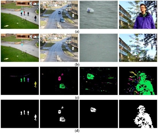 - Cheng, L.; Gong, M. Real Time Background Subtraction from Dynamics Scenes. In Proceedings of the IEEE 12th International Conference on Computer Vision, Kyoto, Japan, 27 September–4 October 2009; pp. 2066–2073.