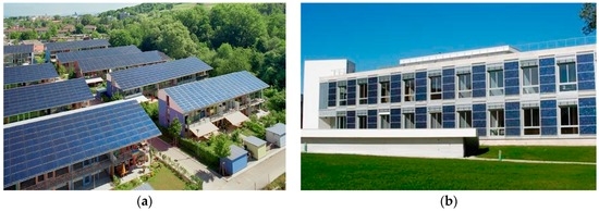 Two examples of high energy performance buildings: (a) solar settlement in Freiburg, Rolf Disch Solar Architecture [2]; and (b) solar XXI, Net zero energy office building in Lisbon [3].