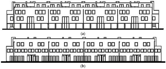 Façades of the buildings: (a) Main façade; and (b) Rear façade.