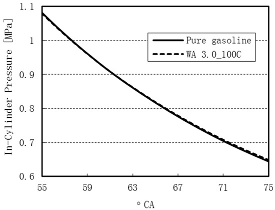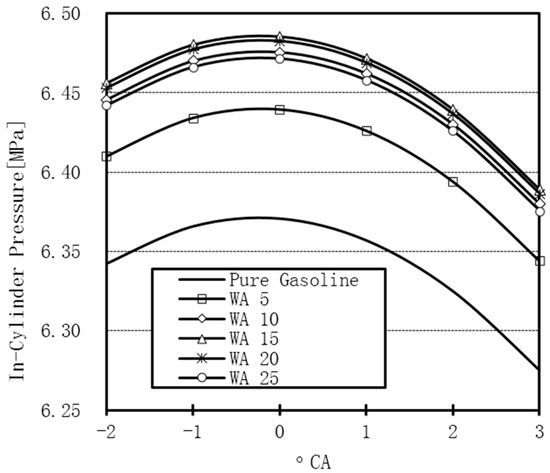 The variation of the in-cylinder pressure for WA 3.0 and pure gasoline.