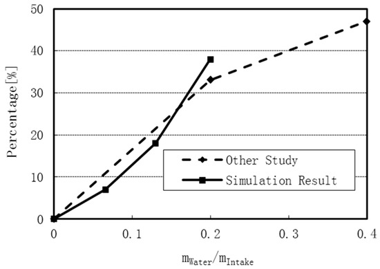 Percentage of decreasing exhaust gas temperature under various water addition ratios.