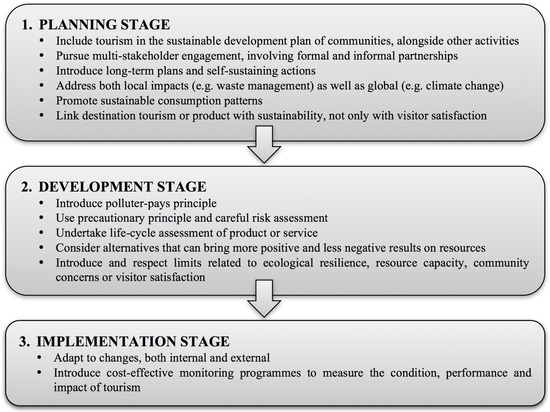 - Success in the development of sustainable tourism involves three key components: (a) involvement of stakeholders; (b) information exchange; and (c) capacity building (Heydendael, A. Sustainable tourism within the context of the ecosystem approach. In Tourism, Biodiversity and Information; Di Castri, F., Balaji, V., Eds.; Backhuys Publishers: Leiden, The Netherlands, 2002; pp. 25–45. [Google Scholar] ). Di Castri further adds diversification (of landscapes, economic activities, and tourism uses), and connectivity (transport, communications, and infrastructure/facilities) (Di Castri, F. Diversification, connectivity, and local empowerment for tourism sustainability. In Tourism, Biodiversity and Information; Di Castri, F., Balaji, V., Eds.; Backhuys Publishers: Leiden, The Netherlands, 2002; pp. 258–284. [Google Scholar] ).