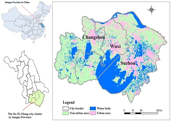 Situated in the eastern coastal economic belt of China (Figure 1), the region of Suzhou, Wuxi, and Changzhou (Su-Xi-Chang), a large city cluster has contributed significantly to the economic growth of Jiangsu Province. The annual gross domestic product (GDP) increased rapidly from 26.87 thousand CNY in 2001 to 114.25 thousand CNY in 2013, far beyond provincial average levels (Figure 2). Following development of the economy, its demographic urbanization level increased from 39.79% in 2001 to 78.22% in 2013, and its land urbanization level grew significantly, from 6.84% in 2001 to 18.83% in 2014 (Figure 3). As of today, China is developing according to its own interpretation of ecological modernization with environmental governance [35,36,37]. In the fierce urban expansion process, environmental problems often remain unidentified in a study region, as there is some uncertainty about which department has official jurisdiction over these issues, and public participation in environmental initiatives is limited. In addition, the local governing system consists of a loose ensemble of institutions, which are increasingly driven by divergent interests. Therefore, significant challenges exist because socio-ecological governance in the region relies on urban planning that lacks scientific content, coordination, and strategy.