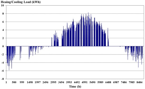 Thus, heating and cooling loads are 12 and 63 kWh/m