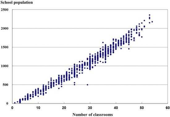 Figure 4 shows the number of students and faculty according to the number of classrooms in Korea.