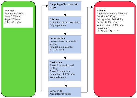 Schematic technological flow in obtaining biopetrol from sugar beetroot (Source: [10]).