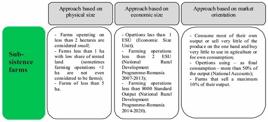 In light of the international specialist literature, farms of 0.5 to 5 ha or between 1 and 5 ha, are considered to be semi-subsistence farms. However, the Romanian specialist literature [19] defines the lower threshold for this type of farms as being 5 ha.