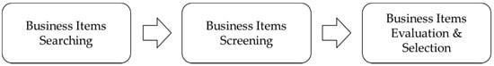 The typical process of searching for new business items consists of three stages, namely, list-up (or identification) of promising items, screening, evaluation [,].