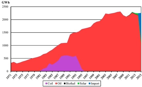 Electricity consumptions by sources in Malta (1971–2015) [25].
