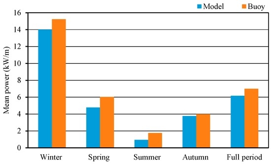 Therefore, mean power values obtained with SWAN model data are very similar to those obtained with the wave buoy, although slightly lower. Furthermore, this seasonal trend can be useful because it is opposite to the solar trend and the two trends may offset each other.