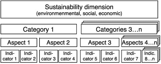 By adopting this structure, a strong and transparent link of each indicator to a single sustainability aspect, to a broader category, and to an underlying dimension of sustainability was ensured. This facilitates reproducibility of results, for instance, when similar indicators are to be defined for another industrial sector. In such a case, the 115 supply chain sustainability aspects and categories identified by Fritz et al. [18] could be used as a basis for assessing their relevance and applicability for the industrial sector under consideration, as well as for identifying and defining the appropriate indicators.