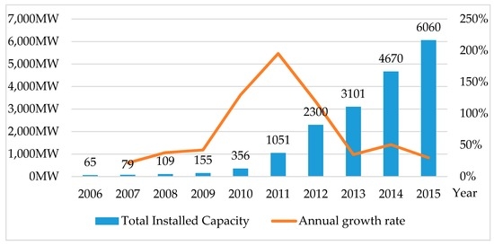 Installed capacity of distributed photovoltaic in China from 2006 to 2015 (official statistics from NEA (National Energy Administration)).