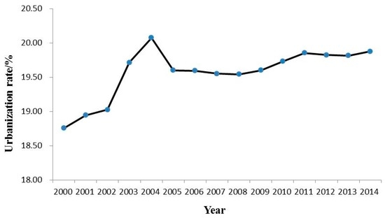 Change of urbanization rate in Panxi region since 2000.