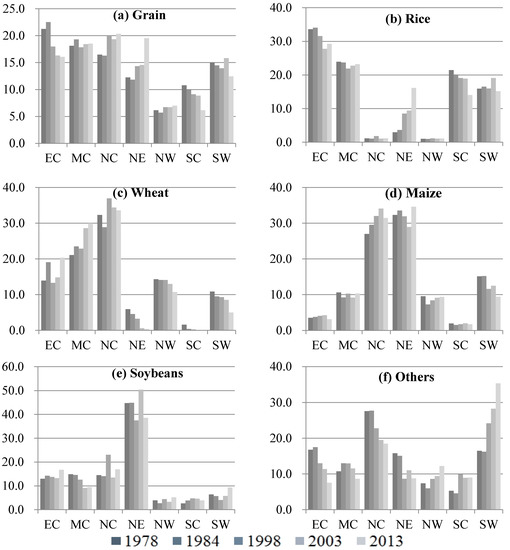 3.2. Changes in the China’s Grain Cropping Pattern