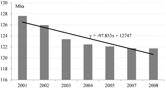 - Yang, H.; Li, X.B. Cultivated land and food supply in China. Land Use Policy 2000, 17, 73–88. [Google Scholar] [CrossRef]