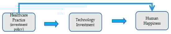 Figure 5 shows that “Healthcare Investment” indirectly affects “Human Happiness” through “Technology Investment”. Therefore, this analysis established healthcare investment as one of the critical requirements of human happiness.