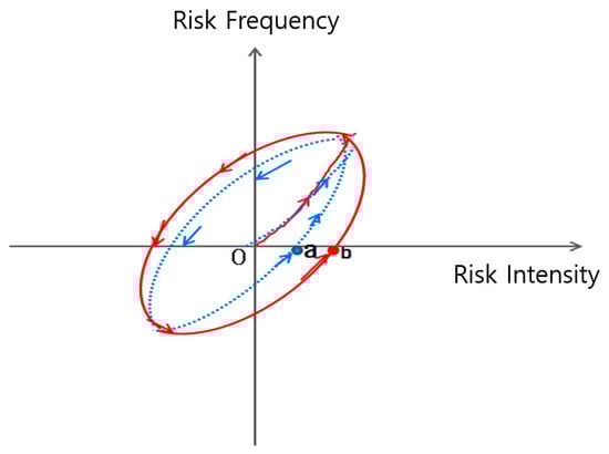 We use the cluster above to construct a hysteresis effect model to see how the relationship between elements changes with changes in external circumstances. Here, hysteresis means that the state of the object depends on the state of the past. In other words, depending on the strength of the system in the past, the recovery paths are different. In the figure, “a” represents the path of the smallest bond and “b” represents the path for the large bond (Figure 9).
