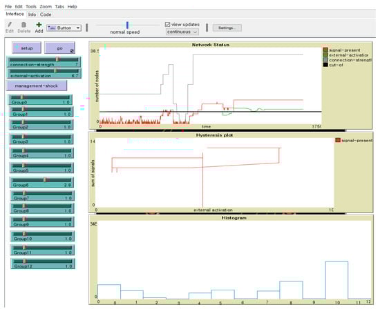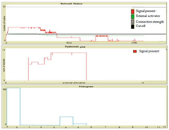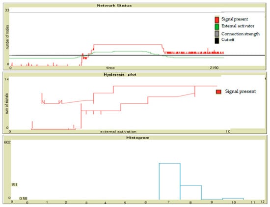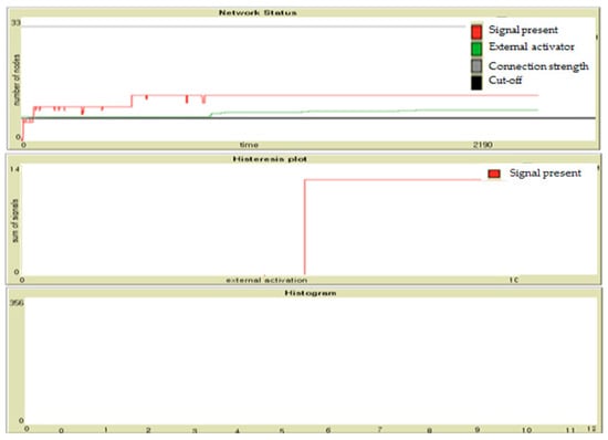 Figure 10 shows the hysteresis plot of the ABM. The histogram shows the frequency of activated needs factors. The following is an example of analysis according to two scenarios [14].