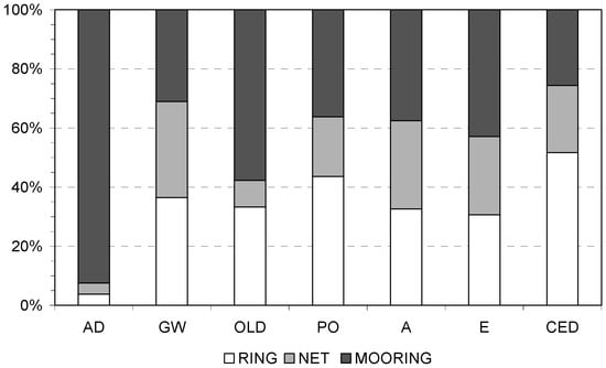 - Baez Paleo, J.D. Ingeniería de la Acuicultura Marina: Instalaciones de Peces en el Mar; Publicaciones Científicas y Tecnológicas de la Fundación OESA: Madrid, Spain, 2009. [Google Scholar]