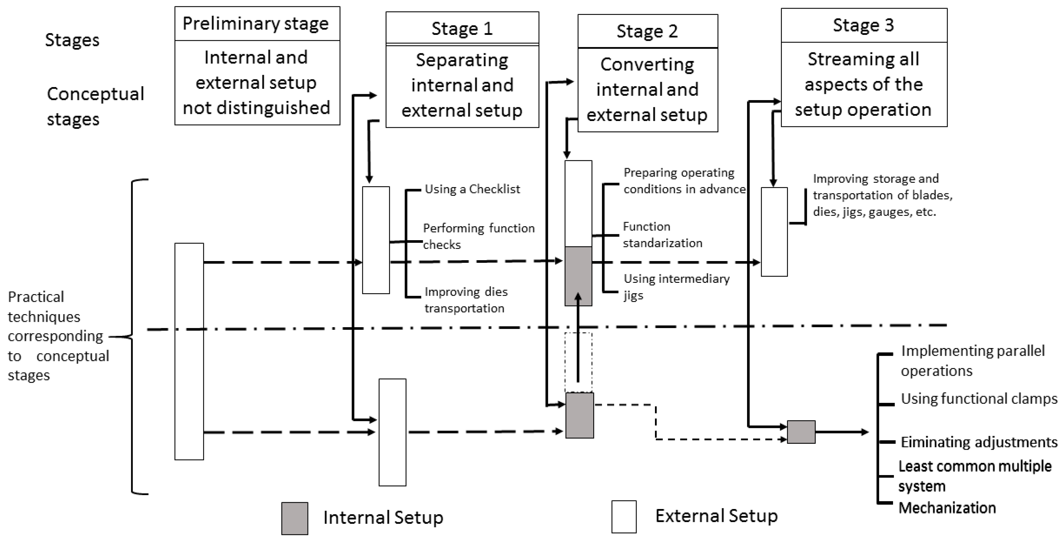 SMED conceptual stages and practical techniques [7]