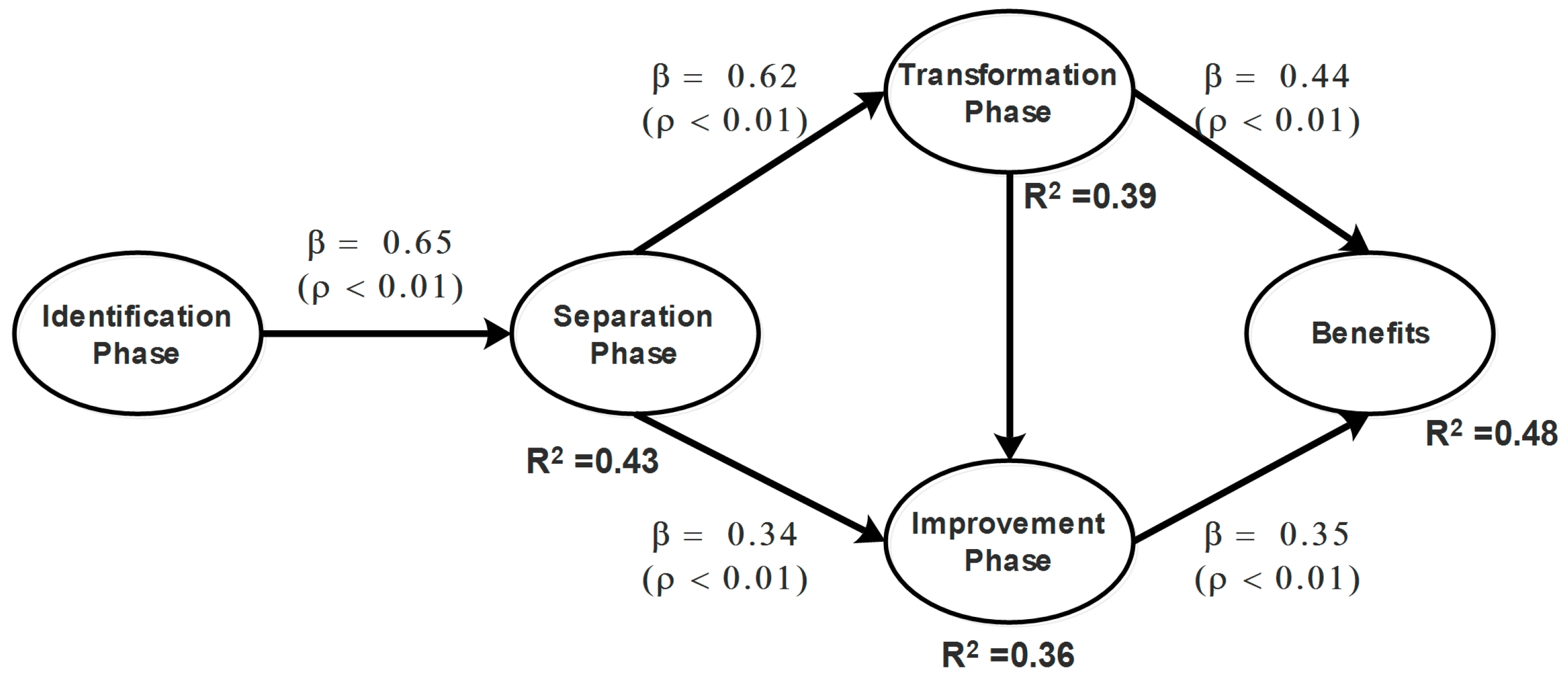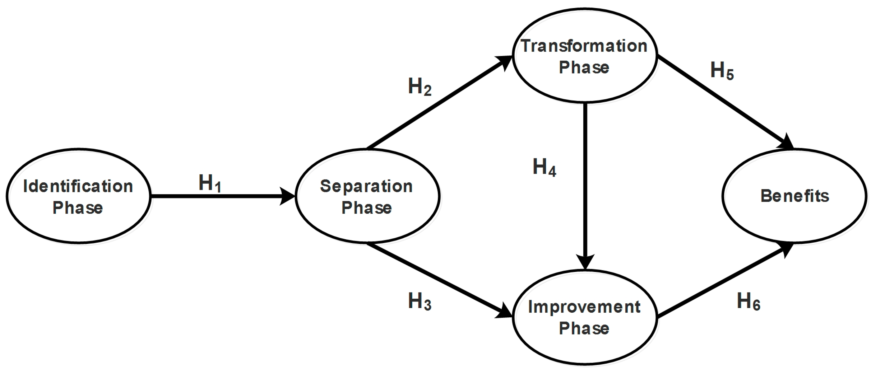 A successful Improvement Phase does not merely depend on activities carried out at the Separation Phase. The Transformation Phase also has an important effect. Let us remind ourselves that, at Transformation Phase, operators make sure all tools, equipment, and raw materials are ready and at hand [40,43]. Similarly, they identify instruments to calibrate machines, employ the correct visual marks, and have operation manuals at their disposal in case they need to be consulted [42,44]. Therefore, since these activities are crucial for successful SMED implementation, it is concluded that they have an influence on the Improvement Phase. The fourth working hypothesis thus states as follows: