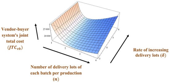Again, the first order partial derivative of vendor-buyer system’s joint total cost regarding rate of increasing delivery lots δ is