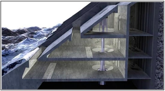 Artistic representation of a three-level Seawave Slot-Cone Generator (SSG); modified with permission from Buccino et al. [15].