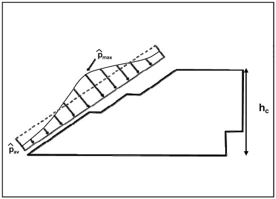 For prediction purposes, Buccino et al. [15] reasoned that due to the inherent randomness of the breaking process, even under a “regular wave” attack the structural response could be best represented by a probability density function (pdf) of wave pressure, rather than a single deterministic value. Thus, it was assumed that for any Hi and T, the average hydrodynamic pressure acting onto the front face of the WEC at the instant of maximum force ( in Figure 5) could be approximately described via a log-normal pdf.