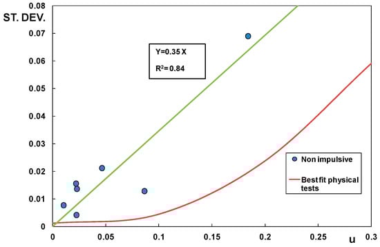 As far as the standard deviation is concerned, the variables t and u resulted poorly correlated to the scatter of the numerical pdfs; in general, the CFD distribution would seem to have a variance far larger than that predicted by the Equation (7) (Figure 24 and Figure 25).