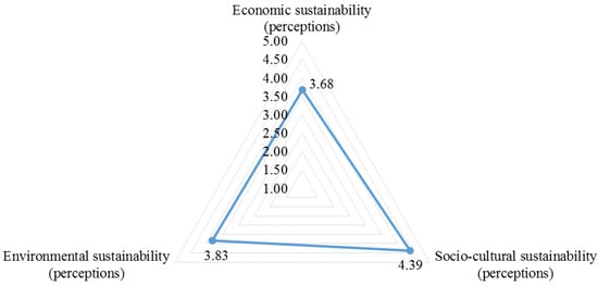 In order to have a better overall measure of the residents’ perceptions towards the three dimensions of sustainability (economic, socio-cultural, and environmental), a synthetic/summary variable for each category of perceptions was constructed. The creation of these synthetic variables involved the use the median of the scores received from each respondent: in the case of economic sustainability perception, the result was the median of the first five items (the sixth item was eliminated), in the case of socio-cultural sustainability perception, the result was the median of the middle nine items, while for environmental sustainability perception, the last eight items were used.