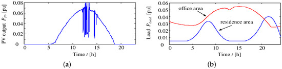 PV output and load demand. (a) PV output and (b) load demand of each area.