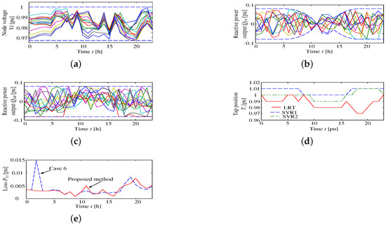 Equation (6) represents the minimization of distribution losses as a function of BESS active and reactive powers, photovoltaic reactive power, home BESS reactive power and LRT and SVR tap positions, respectively. This objective function is used for all cases and all operation modes.