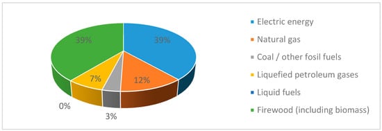 Moreover, Figure 2 shows that the electricity (39%) and biomass (39%) are the main sources that meet the energy demand for hot water in the rural areas.