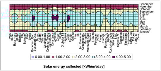 - Bălan, M.C.; Jäntschi, L.; Bolboacă, S.; Damian, M. Thermal Solar Collector Behaviour in Romania. Pol. J. Environ. Stud. 2010, 19, 231–241. [Google Scholar]