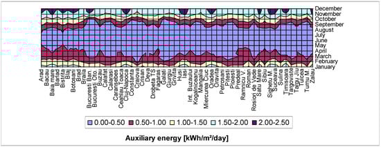 Variation of monthly auxiliary energy.