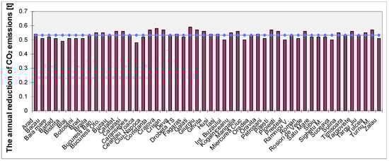 From the viewpoint of environmental protection, it was found that, on average, the emission in the local atmosphere of an approximate quantity of 0.53 tonnes of CO2 each year per household (Figure 8), respectively 13.25 tonnes CO2 during operation period of the SWH system can be avoided [5,82]. As we can see, by using solar energy instead of electrical energy, the production of large amounts of greenhouses gases is avoided.