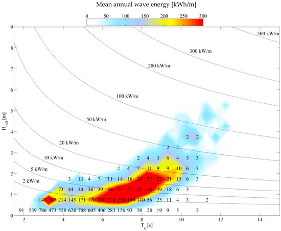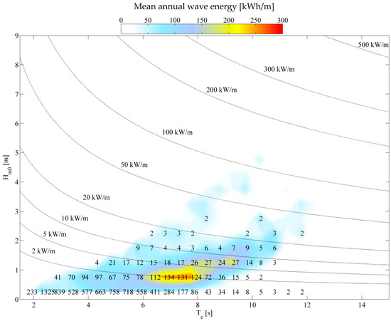 15], where the mean power is about 12 kW/m. Nevertheless, such values are low if compared with those achieved along the west coast of Europe, of Scotland and Ireland, where the mean power is 75 kW/m [