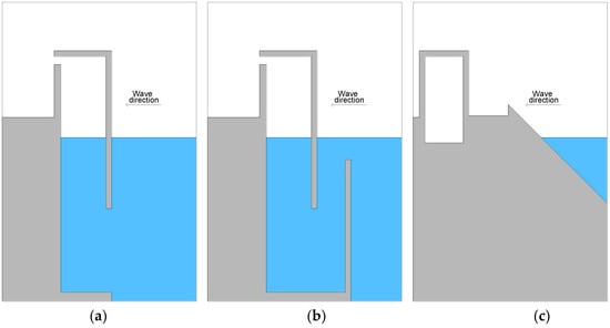 16], which considers: (i) location of the device in respect of the coast; (ii) size and direction of the device compared to the incoming wave; and (iii) working principle. Among such devices, attention is focused here on towards those types of WECs which can be embedded into the breakwater of the port, both in vertical wall and rubble mound dykes. Specifically, four types of systems are considered here: Oscillating water column (OWC) devices, modified OWC systems with an U-shaped internal conduit (U-OWC), point absorber and overtopping devices.