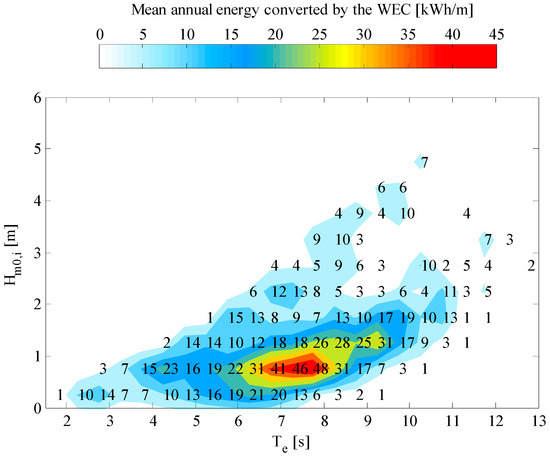 Figure 12, the power matrix of the WEC is shown as function of the energetic period
