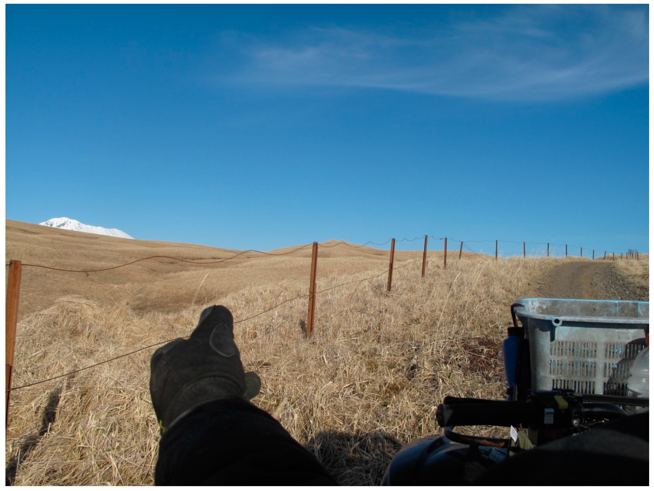 - Ebbert, S. Feral Abandoned Cattle Grazing on Two National Wildlife Refuge Islands in Alaska. In Proceedings of the Alaska Invasive Species Conference, Fairbanks, AK, USA, 5–7 November 2013.