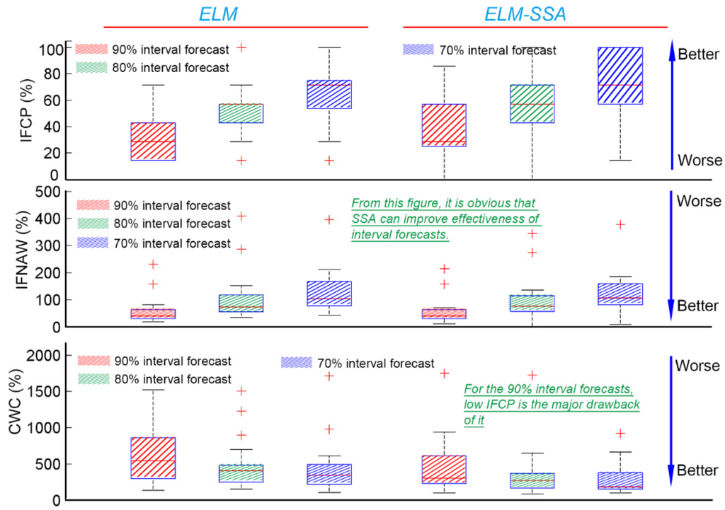 - An extensive comparison of the Autoregressive Integrated Moving Average Model (ARIMA), Back Propagation Neural Network (BPNN), Extreme Learning Machine (ELM), ANFIS, ARIMA-SSA, BPNN-SSA, ELM-SSA, ANFIS-SSA and IFASF lays a strong foundation for future research regarding interval forecasts of average wind power;