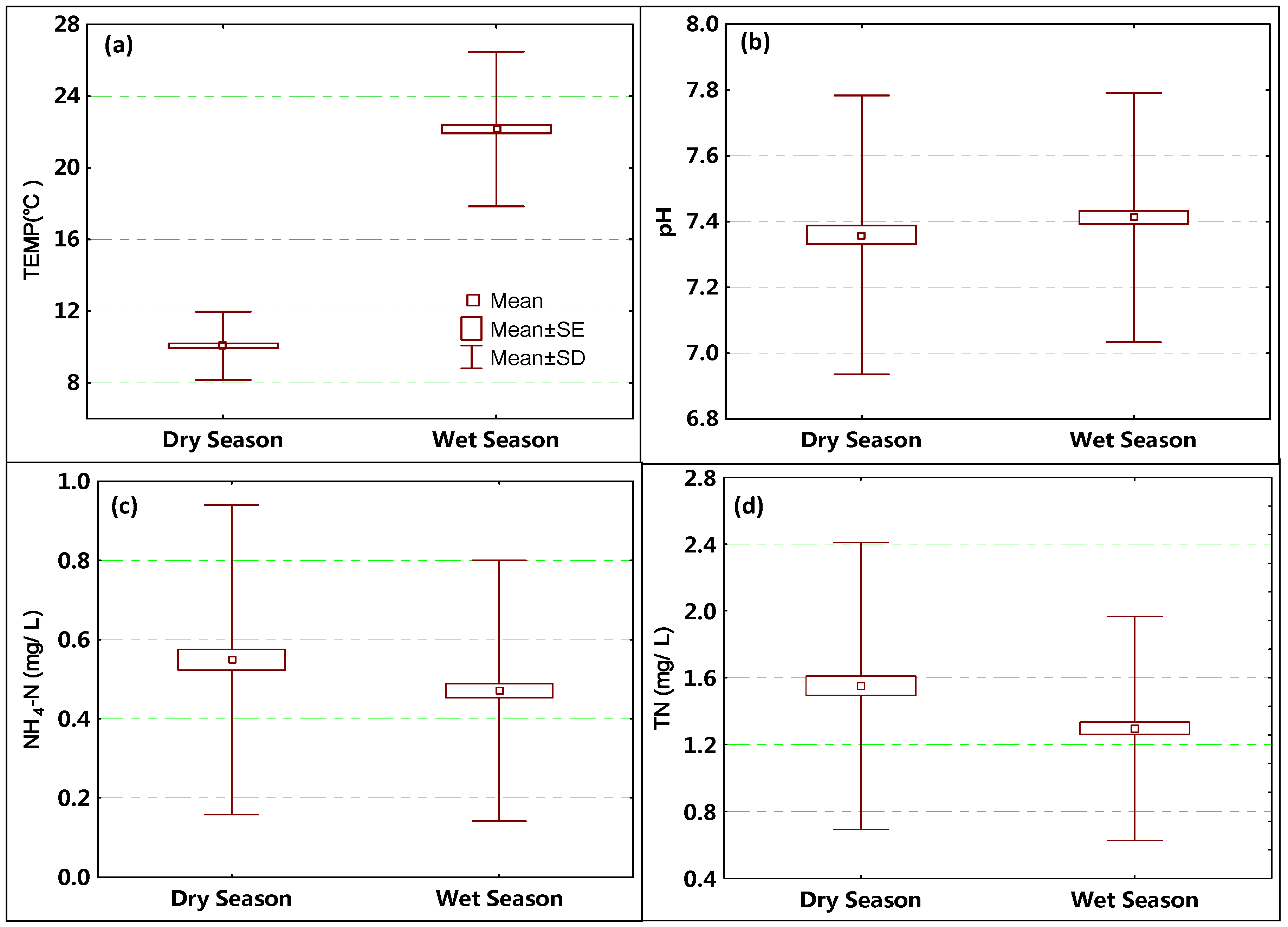 - Juahir, H.; Zain, S.M.; Yusoff, M.K.; Hanidza, T.T.; Armi, A.M.; Toriman, M.E.; Mokhtar, M. Spatial water quality assessment of Langat River Basin (Malaysia) using environmetric techniques. Environ. Monit. Assess. 2011, 173, 625–641. [Google Scholar] [CrossRef] [PubMed]