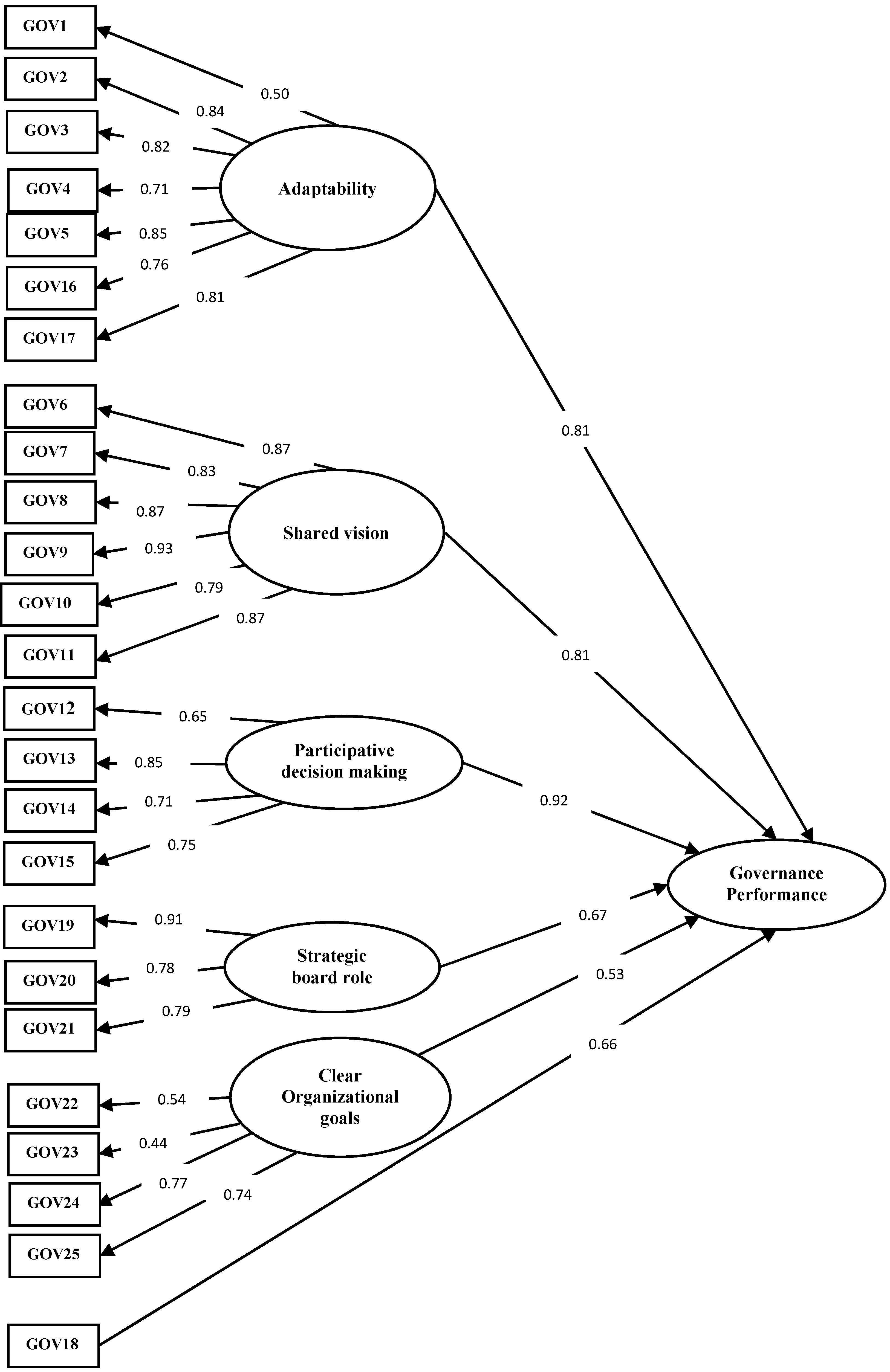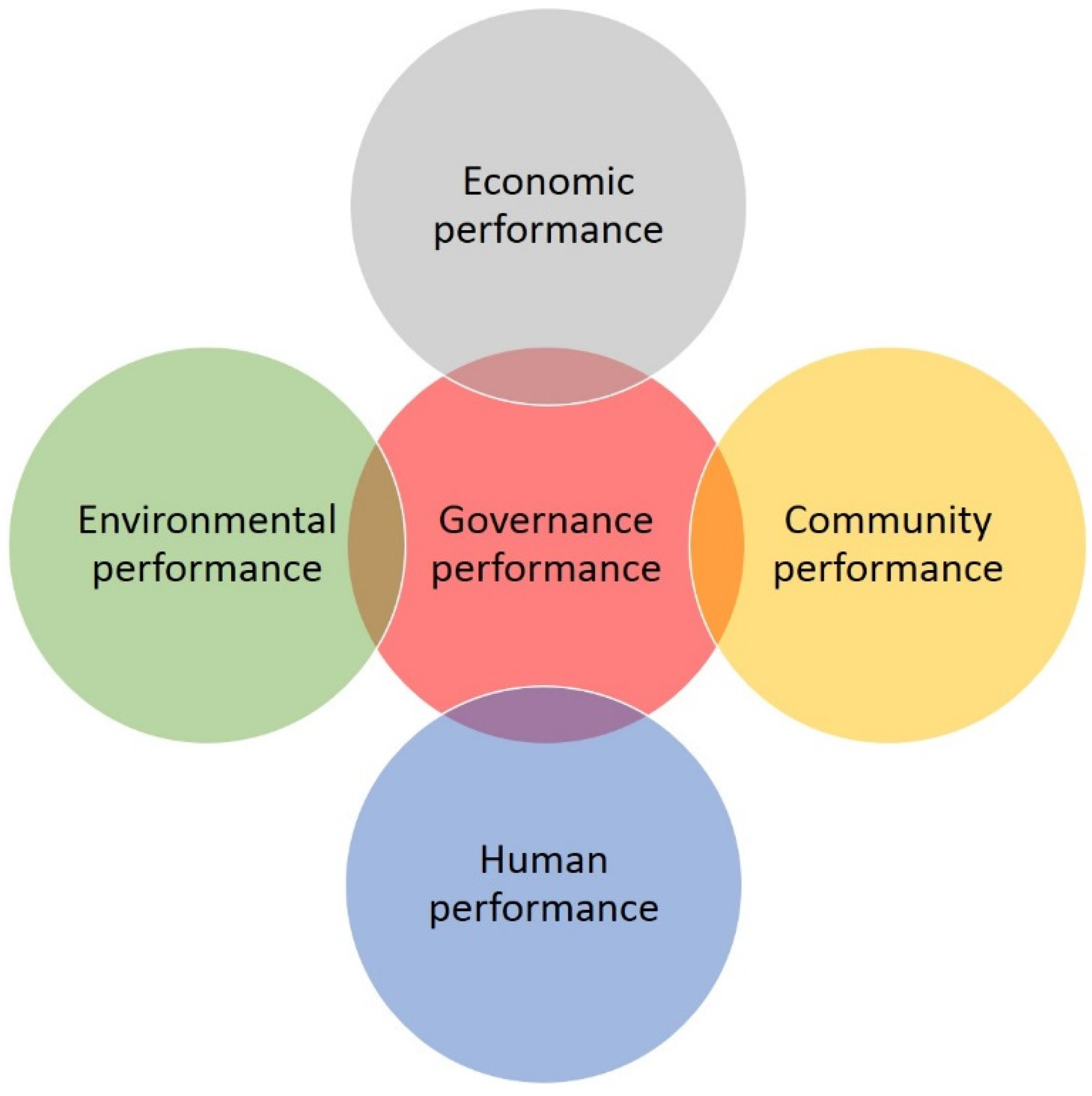 Economic performance is related to the economic conditions supporting a strong financial position, important for the viability of organizations. As such, the focus is not on financial indicators reported in the annual financial accounts of organizations, but on economic indicators influencing these financial indicators [27,45]. Human performance refers to the relationship of the organization with its workforce [46]. Environmental performance focuses on the efforts organizations make to protect nature [47]. Community performance refers to how organizations deal with their responsibilities in society [48], including the relationships with dominant stakeholders: beneficiaries of the social mission and customers, paying for the delivered products and services. Governance performance refers to “systems and processes concerned with ensuring the overall direction, control and accountability of an organization” [49]. Important issues related to organizational governance are board composition and board behavior [50,51], as well as dealing with stakeholder expectations [52]. Governance performance is a particular performance domain as it is expected that good governance practices have a positive impact on organizational decision-making, in turn positively influencing the other performance domains of the organization [53,54].