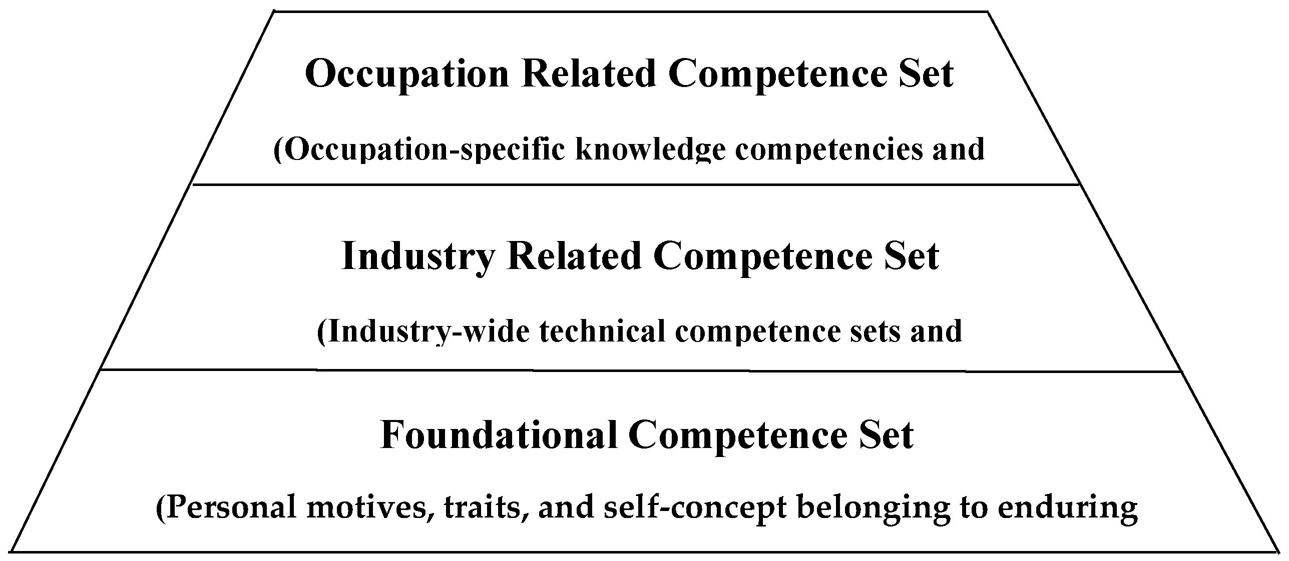 The Employment and Training Administration (ETA) of the U.S. Department of Labor [31] constructed a general competency model (Figure 3) and assessed the appropriate and specific hierarchy to determine the needs of occupations in targeted industries such as nursing, process engineering, product engineering in the semiconductor industry, and computer programming in the information technology industry [8].