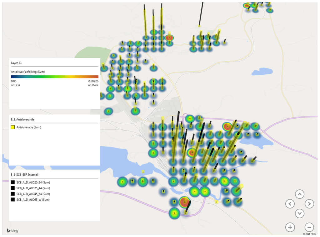 Tim Johansson, Eugenia Segerstedt, Thomas Olofsson and Mats Jakobsson initially discussed the idea of the paper. Eugenia Segerstedt worked on the social sustainability framework and provided an overview of relevant social sustainability research. Tim Johansson reviewed previous research on visualization. Eugenia Segerstedt chose and statistically prepared variables for visualization based on survey data she produced with Mats Jakobsson in previous work. Tim Johansson was responsible for data integration, survey geovalidation and all the graphic work. Tim Johansson and Eugenia Segerstedt analyzed the data, conceptualized the final version of the article and wrote it. Thomas Olofsson and Tim Johansson reviewed the article and were involved in various stages of the work.