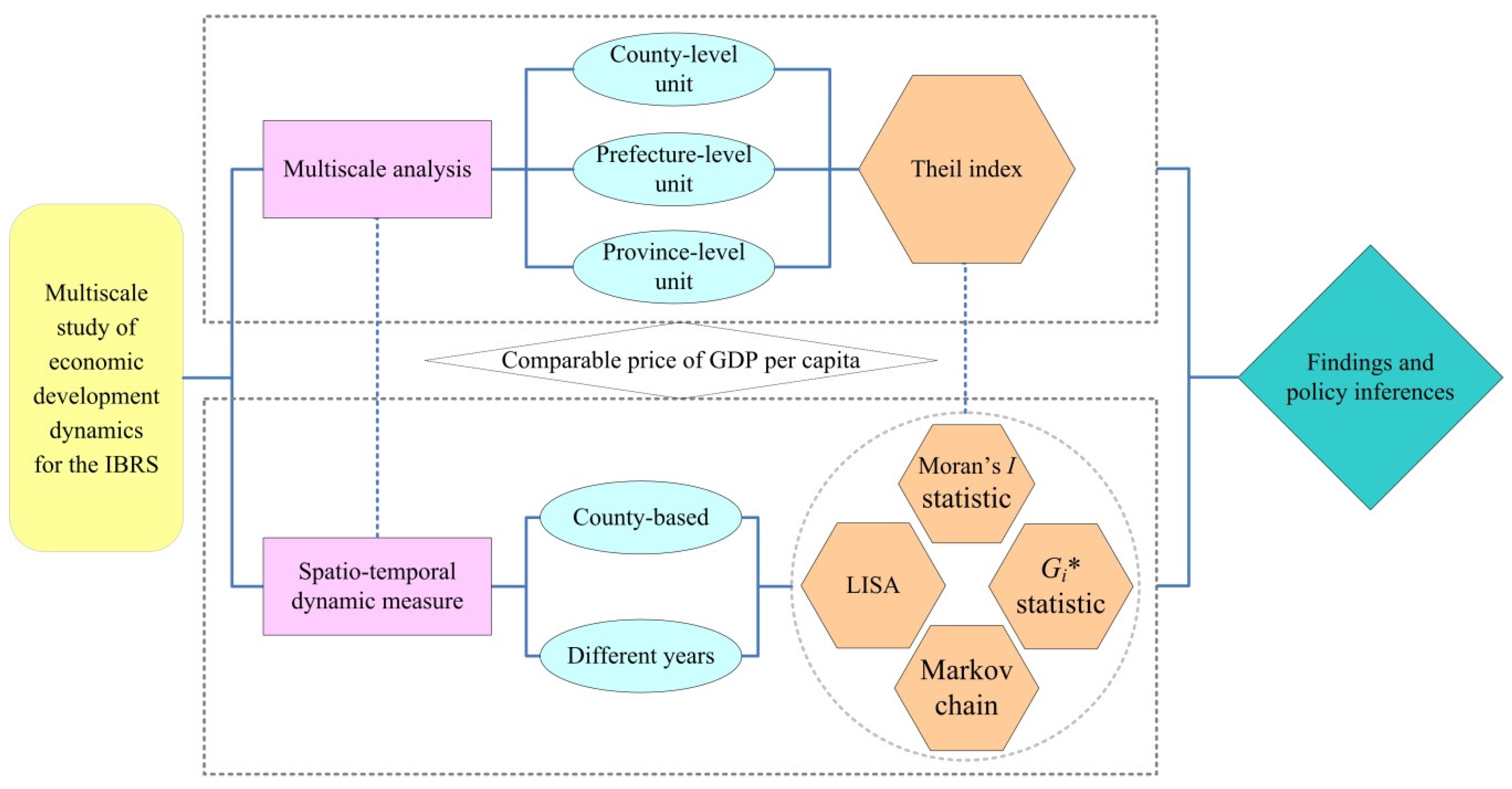 Framework of multiscale study on economic development dynamics for the IBRS.