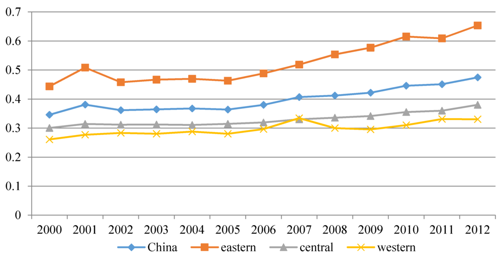 It should be noted that the values of GDPI lie between zero and unity, and the higher the GDPI, the better the green development performance.
