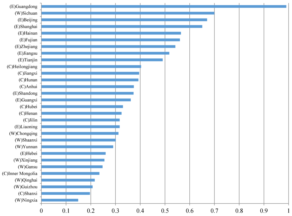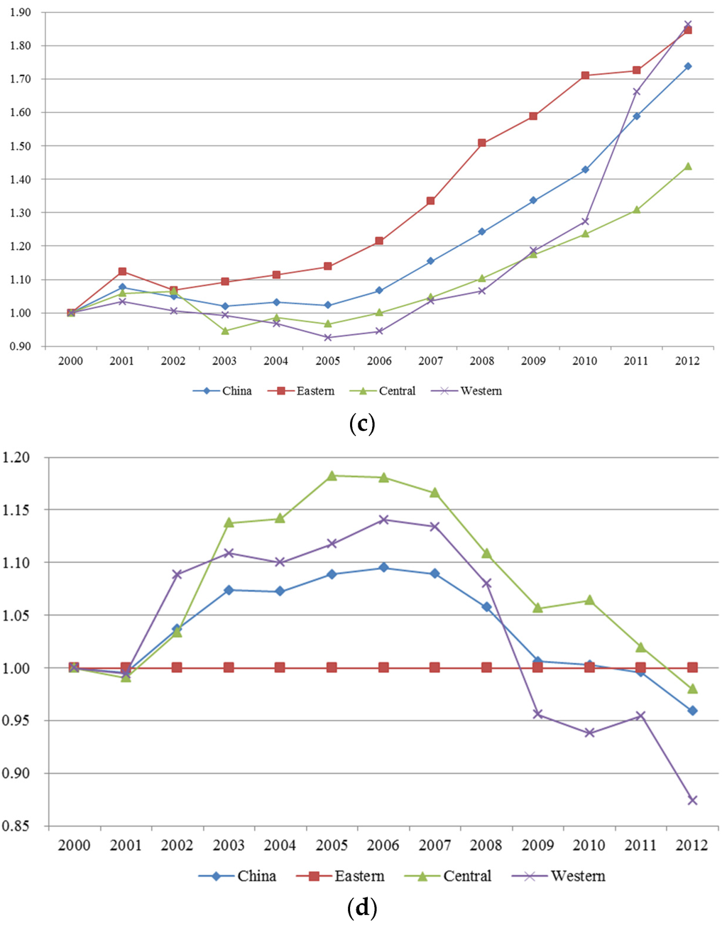 37], and it means that energy reduction, desirable output expansion and pollutants reduction are assigned the same importance, namely 1/3. For pollutants, the Chinese government introduced a series of regulations and measures to control the main pollutants in 2006. In other words, it is difficult to present the accurate weight for the different pollutants. Thus, we give the weight