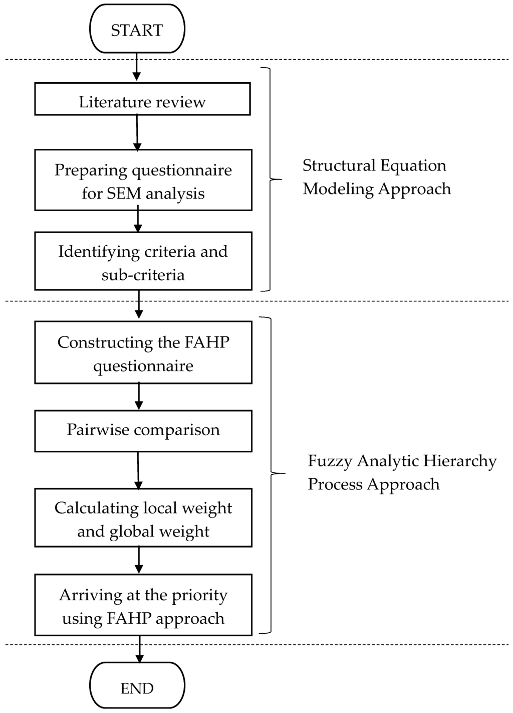 This paper is structured as follows. The second section reviews the literature on SEM and FAHP. The third section discusses the critical factors of environmental performance measurement. The fourth section addresses our methodology; in addition to detailed information on the instrument, data collection, and target population, this fourth section also explains the choices of SEM and FAHP. The final section presents our results and conclusions.